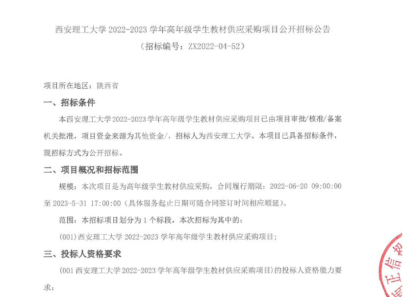 【教材】beat365正版唯一官网必一2022-2023学年2022级新生教材采购与配送项目公开招标公告