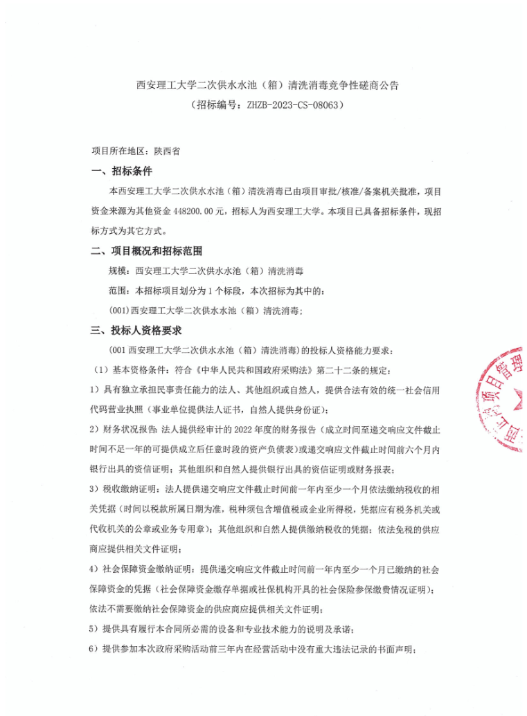 【水池(箱)清洗消毒】beat365正版唯一官网必一二次供水水池(箱)清洗消毒竞争性磋商公告