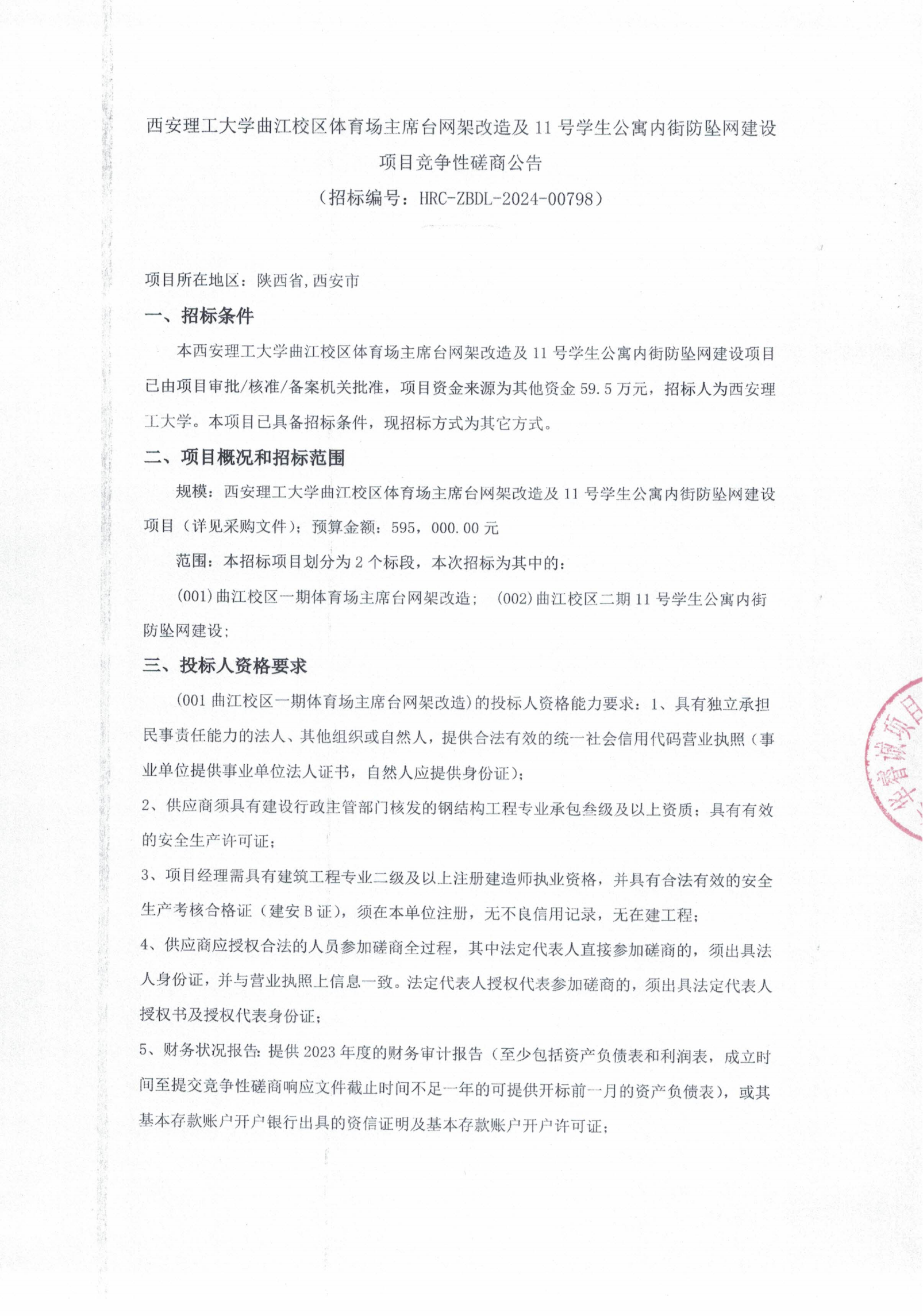 beat365正版唯一官网必一曲江校区体育场主席台网架改造及11号学生公寓内街防坠网建设项目竞争性磋商公告