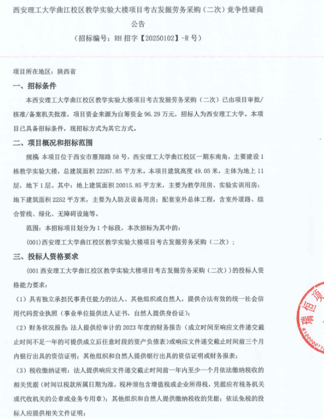 【考古发掘劳务】beat365正版唯一官网必一曲江校区教学实验大楼项目考古发掘劳务采购(二次)竞争性磋商公告