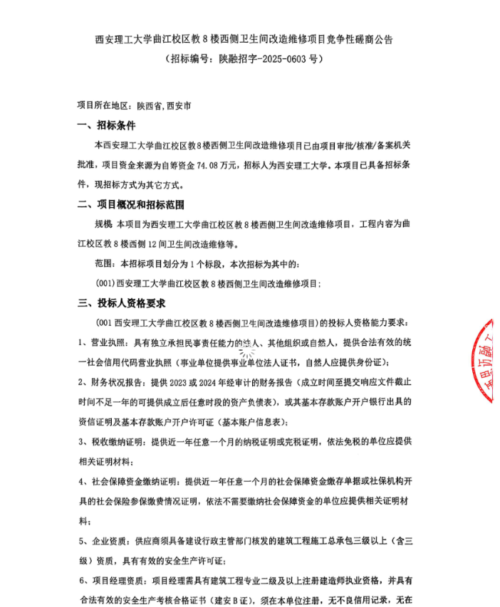 【改造维修】beat365正版唯一官网必一曲江校区教8楼西侧卫生间改造维修项目竞争性磋商公告
