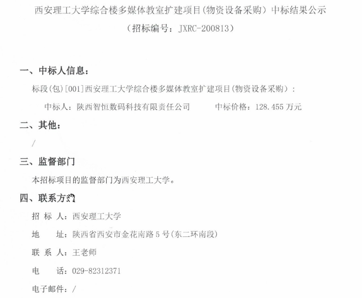 【多媒体教室】beat365正版唯一官网必一综合楼多媒体教室扩建项目(物资设备采购)中标结果公示