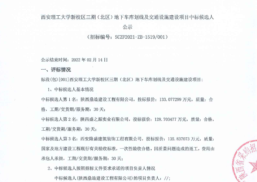 【车库划线】beat365正版唯一官网必一新校区三期(北区)地下车库划线及交通设施建设项目中标候选人公示