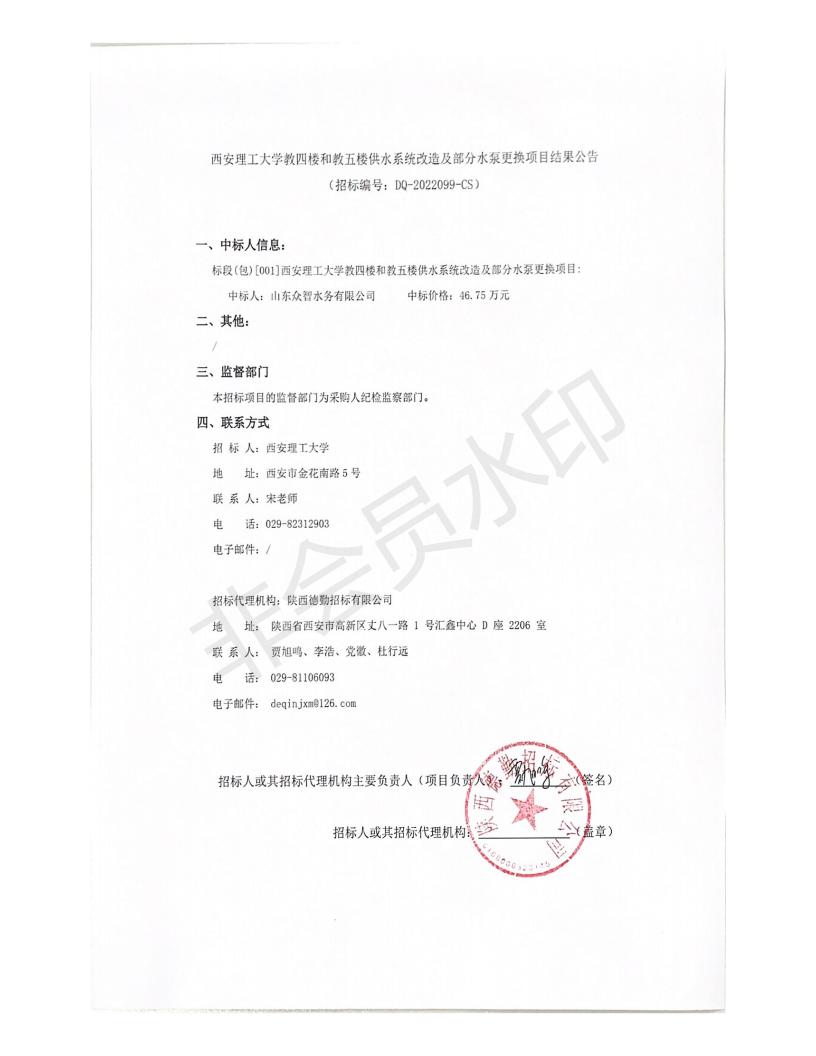 【供水系统改造】beat365正版唯一官网必一教四楼和教五楼供水系统改造及部分水泵更换项目结果公告
