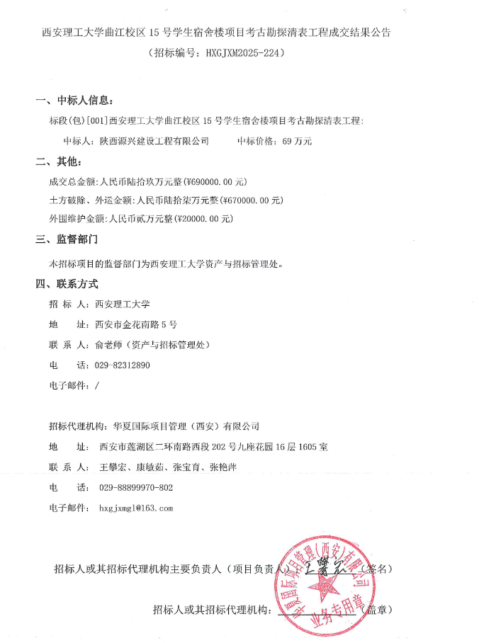 【清表工程】beat365正版唯一官网必一曲江校区15号学生宿舍楼项目考古勘探清表工程成交结果公告