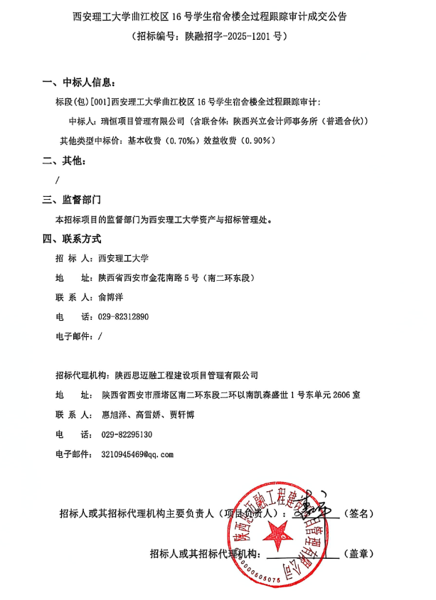 【全过程审计】beat365正版唯一官网必一曲江校区16号学生宿舍楼全过程跟踪审计成交公告