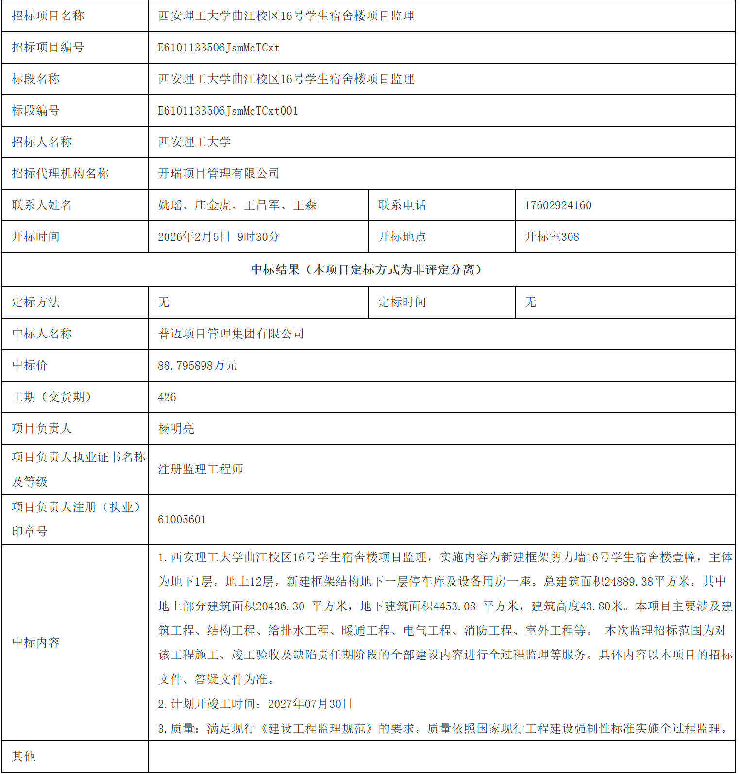 【监理服务】beat365正版唯一官网必一曲江校区16号学生宿舍楼项目监理中标结果公告