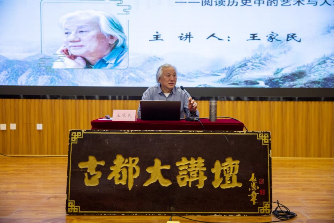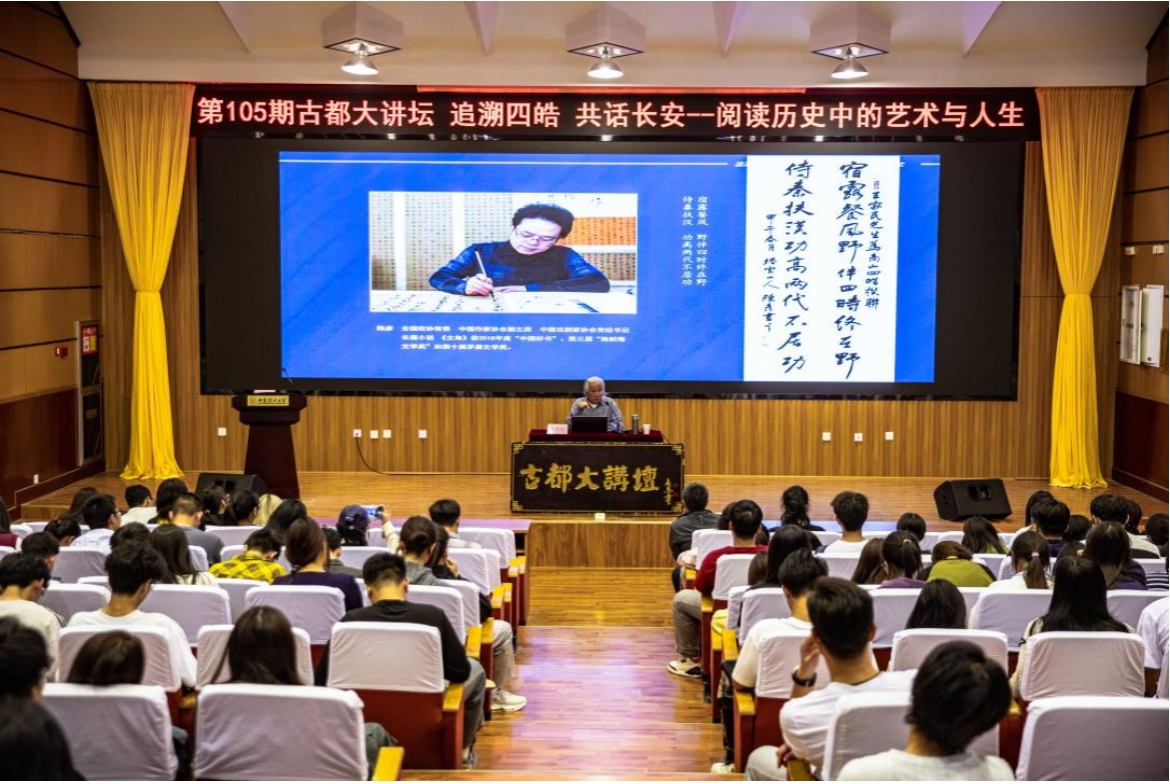 10月14日晚,beat365官网古都大讲坛第105期《追溯四皓 共话长安——阅读历史中的艺术与人生》专题讲座举办。讲座由知名画家、作家,beat365官网书画院院长、二级教授、博士生导师王家民主讲,他以深厚的历史积淀和丰富的文化解读,带领师生走进“商山四皓”这一古代隐士文化传奇,与师生共同探讨其所蕴含的艺术与人生哲理。