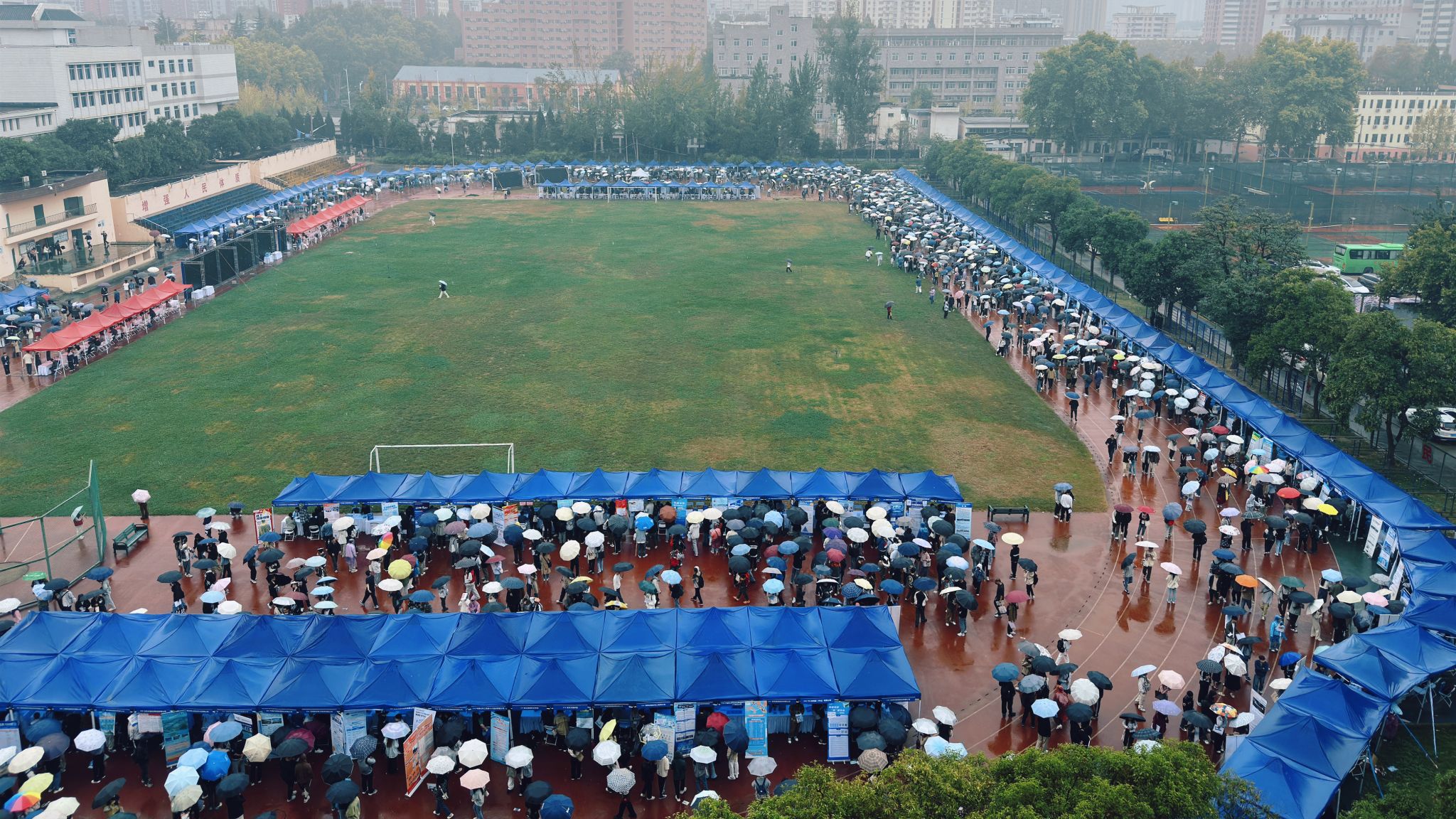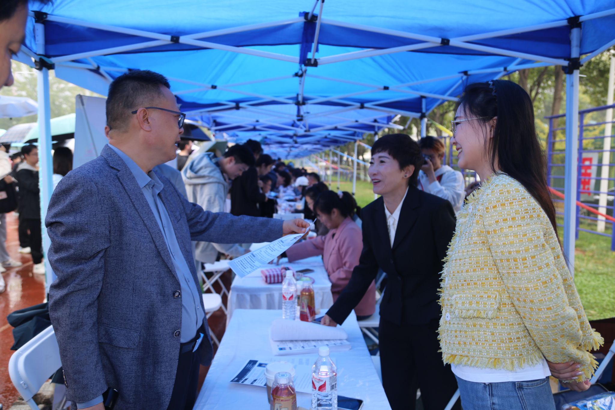 招聘会当天虽下起小雨,但现场人头攒动,毕业生们积极寻找心仪的企业,主动和HR交流、投递简历。本次招聘会共邀请参会企业392家,涵盖了制造业,建筑业,信息传输、软件和信息技术服务业,科学研究和技术服务业,电力、热力、燃气及水生产和供应业等多个行业,提供岗位超过1万个,参会学生3000余人,企业收到学生简历近11000份。