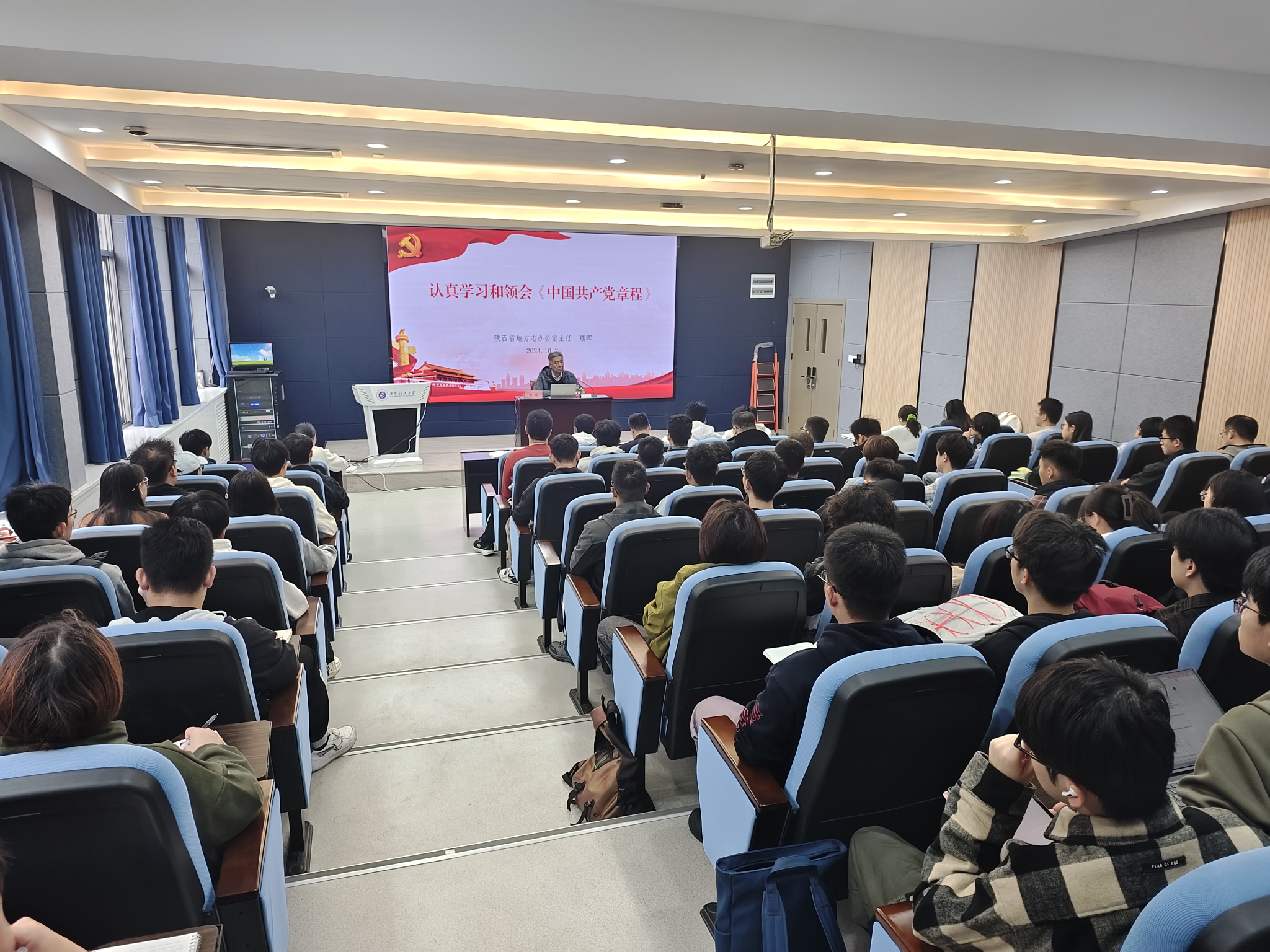 10月26日,beat365官网党校第79期入党积极分子培训班顺利开班,陕西省地方志办公室主任熊晖应邀作首场报告。本期培训班1200余名入党积极分子参加培训。