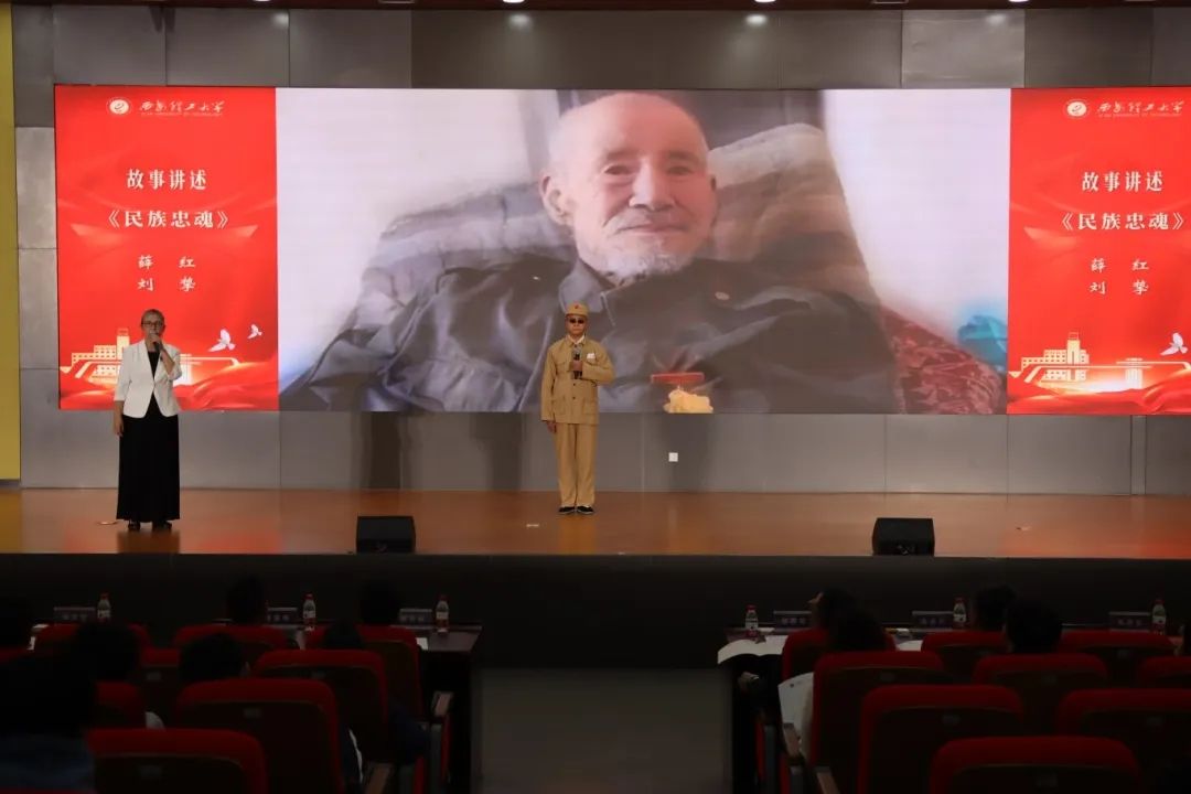 活动在庄严的国歌声中拉开序幕。西安市英烈故事 “五进” 宣讲团的老师们和beat365官网师生分别以诗朗诵、情景剧、演唱等形式生动地讲述了一个个鲜活的红色感人故事,带领现场观众回溯激情燃烧的岁月,感受英烈们的崇高精神境界。诗朗诵《英雄》以深情的笔触和激昂的语调,深刻诠释了英雄的伟大形象与崇高品格;