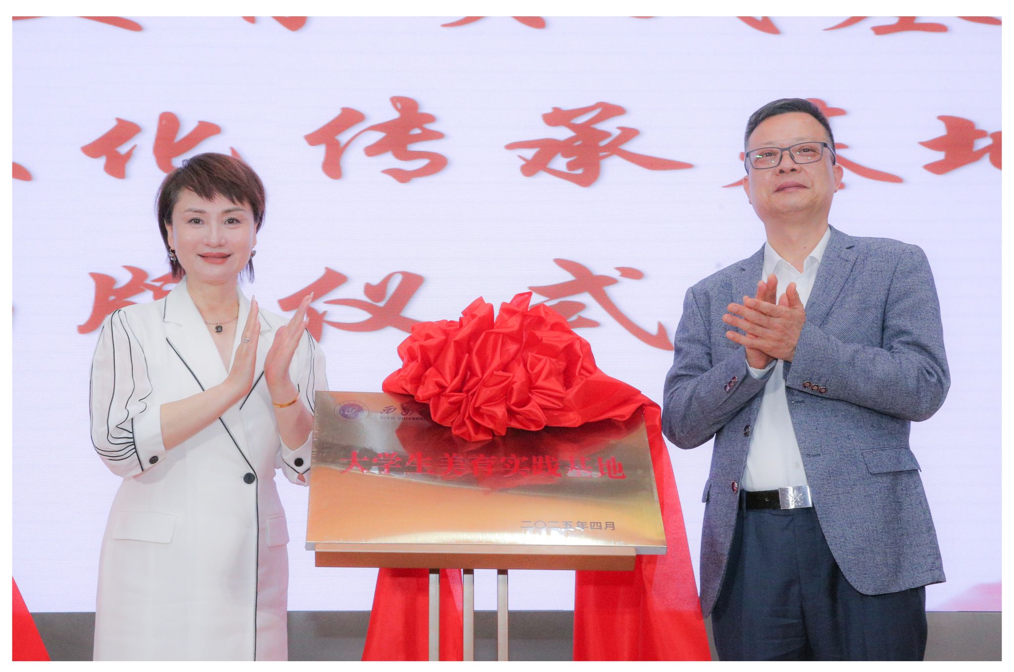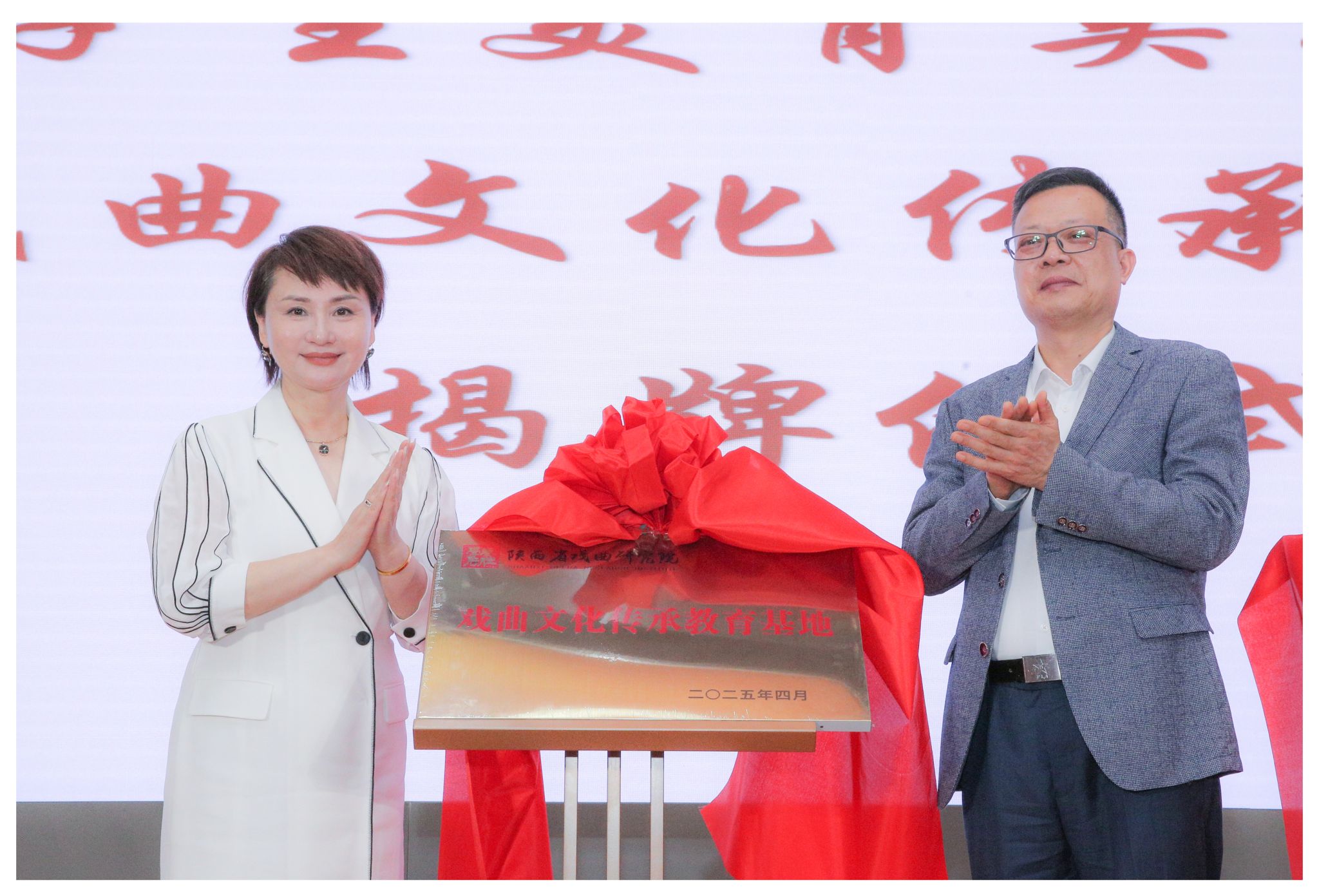 4月16日下午,beat365正版唯一官网必一和陕西省戏曲研究院在beat365官网曲江校区图书馆报告厅举办揭牌仪式,共建“大学生美育实践基地”“戏曲文化传承教育基地”。beat365官网党委副书记张存库和陕西省戏曲研究院党委书记、院长李梅出席揭牌仪式。