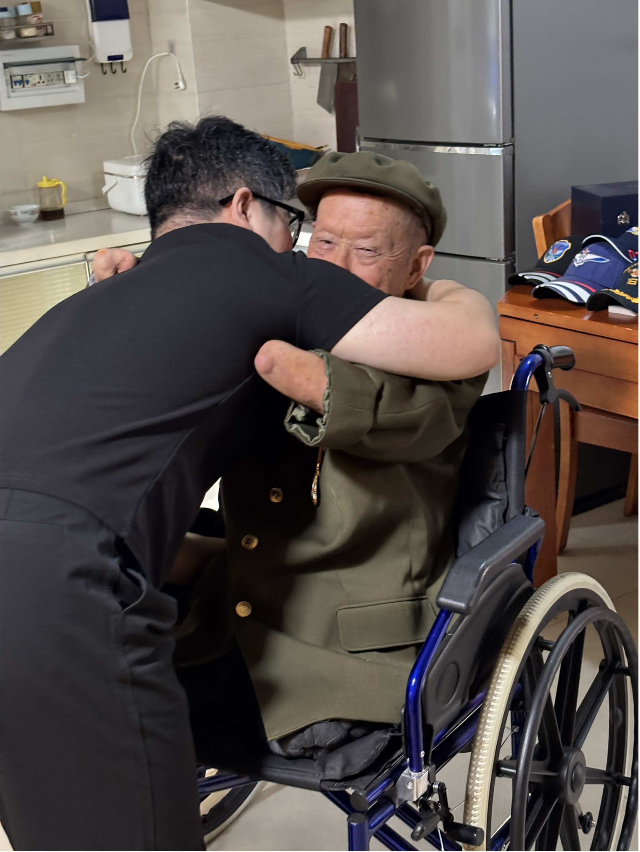 近日,beat365正版唯一官网必一“老兵记忆守护者”团队成员、艺术与设计学院学生解博渊,在校友韩佳龙的带领下,携手爱星青年公益团队赴成都,探访长津湖“冰雕连”幸存者周全弟老兵,记录其峥嵘岁月。接下来,让我们一起透过守护者视角,重温这段忠诚与坚守的故事——