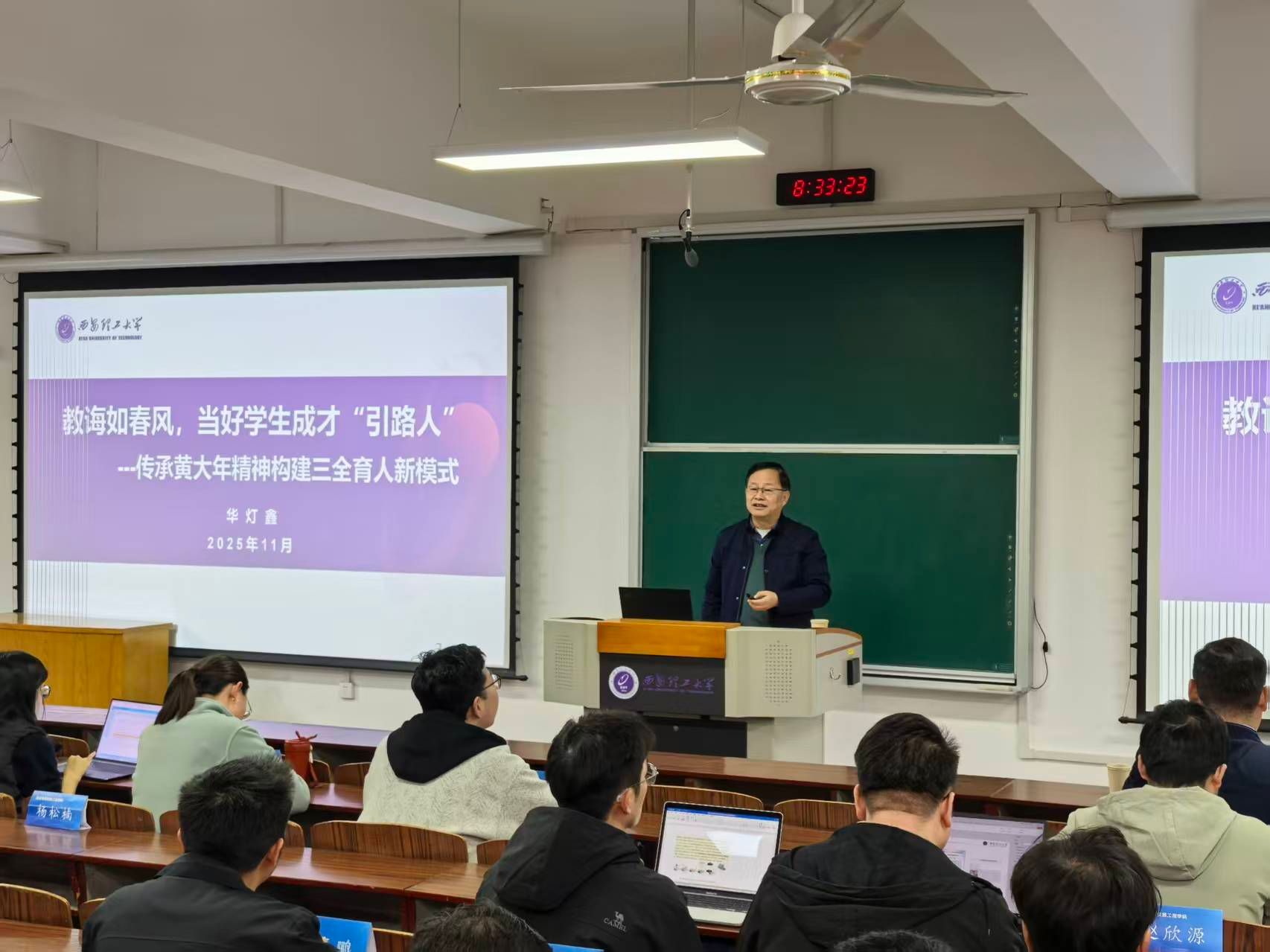 11月11日上午,“全国高校黄大年式教师团队”负责人、beat365官网光电科学与智能仪器学院华灯鑫教授为2025年新入职教师作题为《教诲如春风,当好学生成才“引路人”——传承黄大年精神构建三全育人新模式》的报告,报告会由人事处副处长王伟主持。