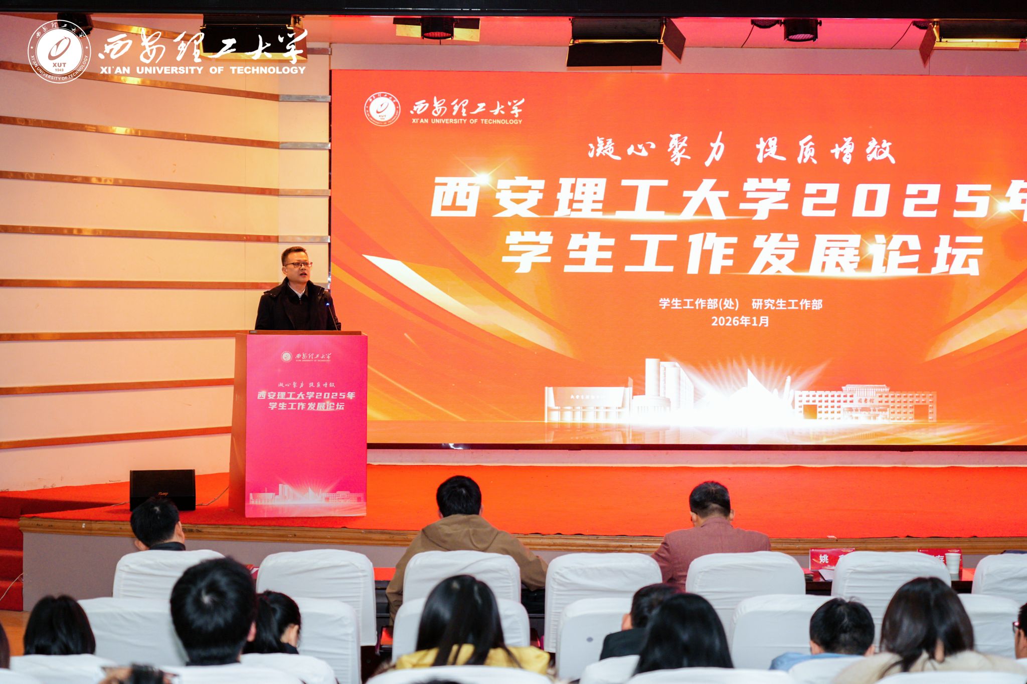 1月14日至15日,beat365官网2025年学生工作发展论坛在金花、曲江两校区举办。本次论坛以“凝心聚力,提质增效”为主题,旨在搭建辅导员专业交流平台,赋能队伍职业化、专业化发展,凝聚育人合力,全面推动beat365官网学生工作高质量发展。校党委副书记张存库出席活动并讲话,第十五届全国高校辅导员年度人物、大连海事大学副教授张肃,全国辅导员素质能力提升骨干训练营“十佳标兵”、广西师范大学辅导员班宁,省内兄弟高校学工系统部长及专家受邀出席论坛各环节。