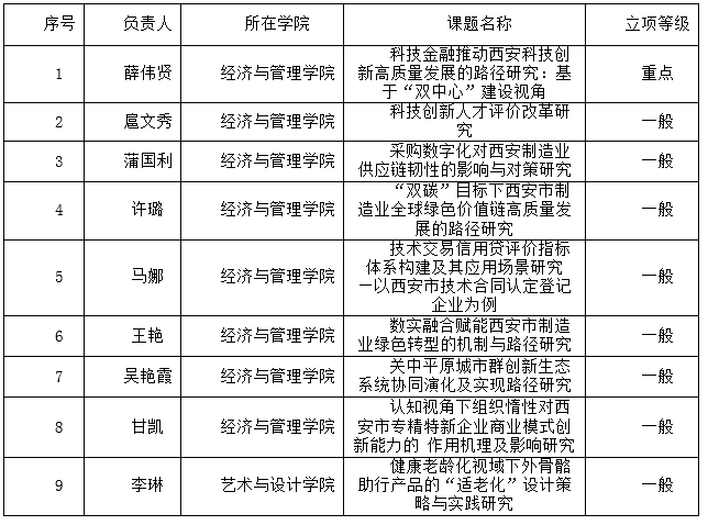 beat365官网2024年度西安市软科学研究项目立项一览表