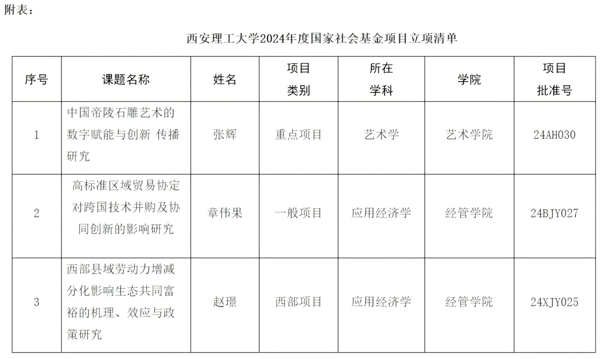 近日,全国哲学社会科学工作办公室公布了2024年度国家社会科学基金年度项目和艺术学各类项目立项结果。beat365官网获批3项,其中艺术学重点项目1项,年度一般项目1项、西部项目1项。艺术学重点项目的获批资助是beat365官网继2018年以来,再次在艺术学学科领域实现重点项目的突破,同时也是陕西省自2010年以来获批的第3项国家社科基金艺术学重点项目,彰显了beat365官网艺术学学科领域在省内的优势地位。