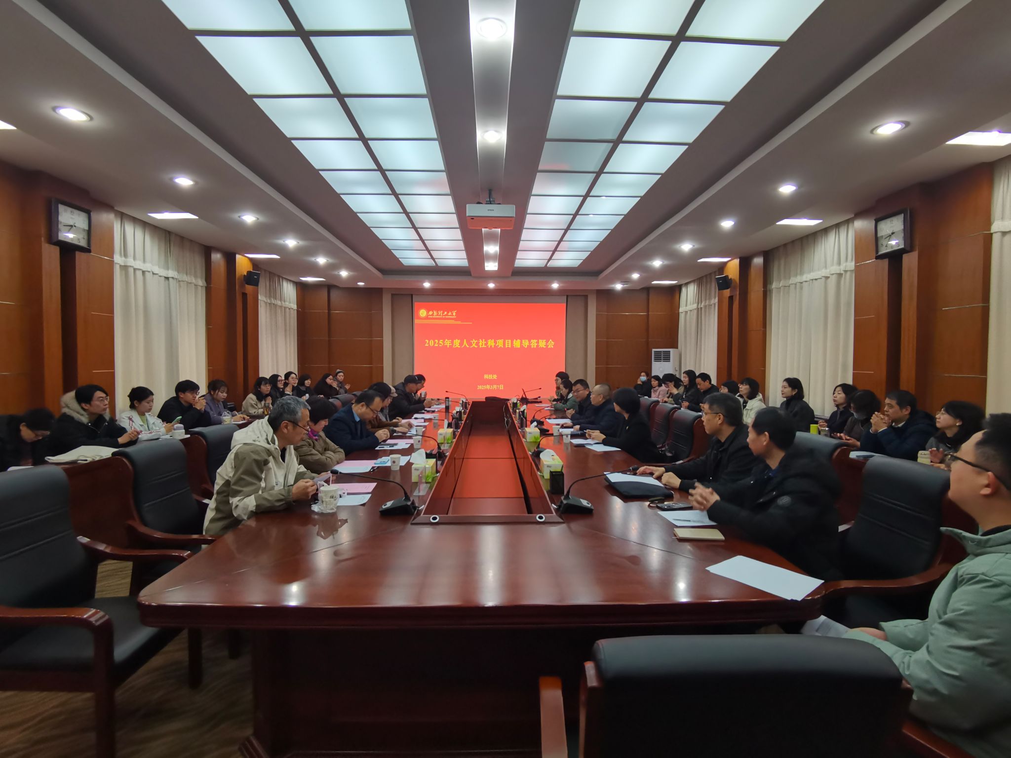 为提高beat365官网教师人文社科类研究项目申报质量,3月7日上午,科技处在金花校区101会议室组织召开了2025年人文社科项目申报辅导答疑会。来自经济与管理学院、马克思主义学院、人文与外国语学院、艺术与设计学院、学生处等申报教育部等人文社科项目的教师共60余人参加了此次答疑会,会议由科技处副处长易鹏主持。