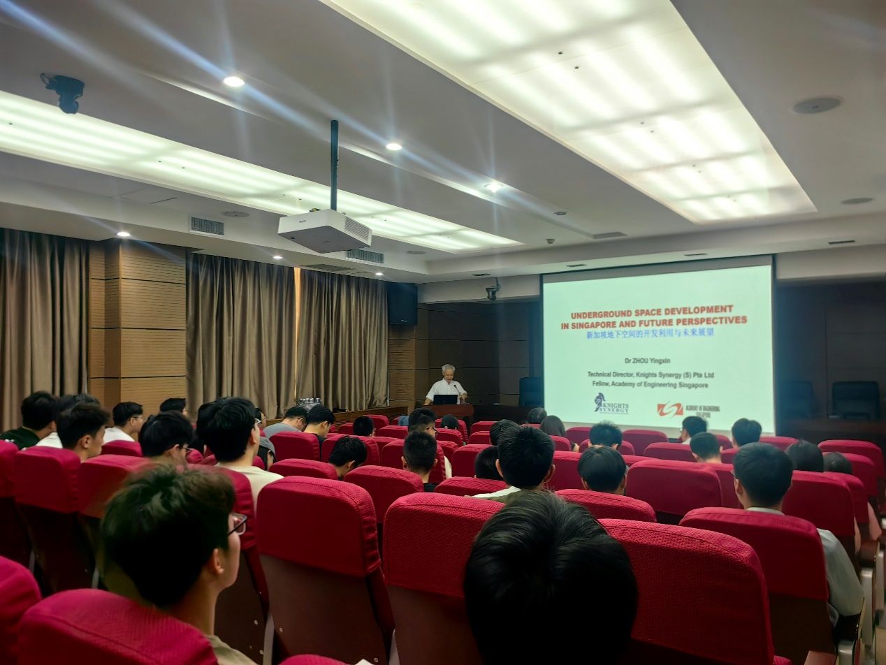周迎新院士以“新加坡地下空间的开发利用与未来展望”为题,阐述了土地稀缺的新加坡将地下空间作为第四国土开发利用的必然性和技术路径,并从国会立法、国土规划、政府政策、经济技术人才储备等方面进行了分析。报告还阐述了城市地下空间总体规划、地质调查、数字地下及地下水循环系统等方面的先进举措,引发在座师生广泛思考。