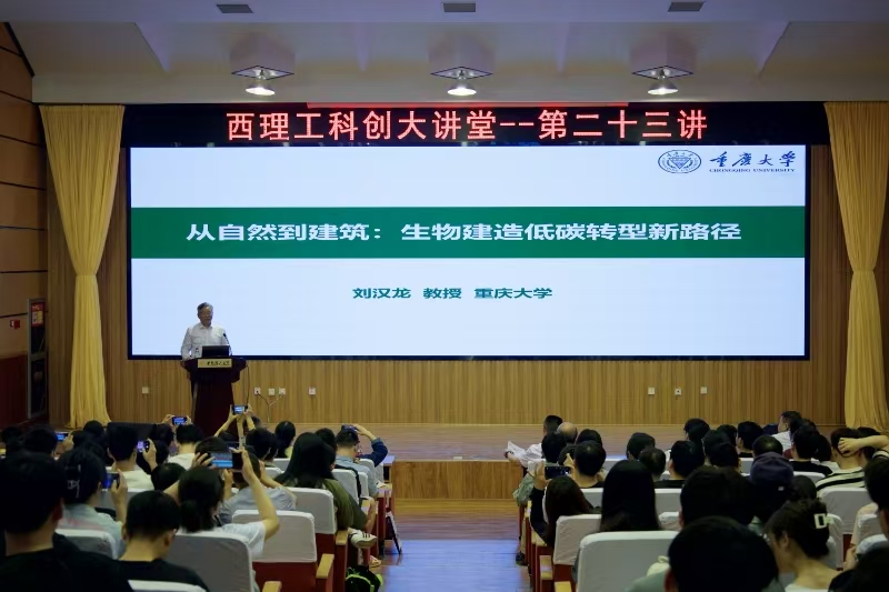 刘汉龙院士以“从自然到建筑:生物建造的低碳转型新路径”为题,基于土木工程建造技术发展现状和技术转型需求,提出了人与自然和谐共生的生物建造的概念,阐述了生物建造的基本内涵,构建了生物建造全面体系,围绕微生物建造、植物建造、动物建造和仿生建造四个类别,从生物建造理论、技术、材料、装备和工程案例等方面进行了详尽阐述,并展望了生物建造学科的发展前景。学术报告引发与会师生广泛思考。
