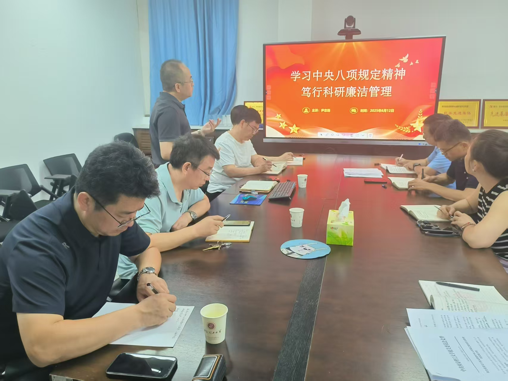 6月12日,尹忠刚以《学习中央八项规定精神,笃行科研廉洁管理》为题,详细介绍了中央八项规定的内容,并结合高校违反中央八项规定精神的典型案例,深入分析了科技处工作实际,明确了实现廉政科研管理的路径。