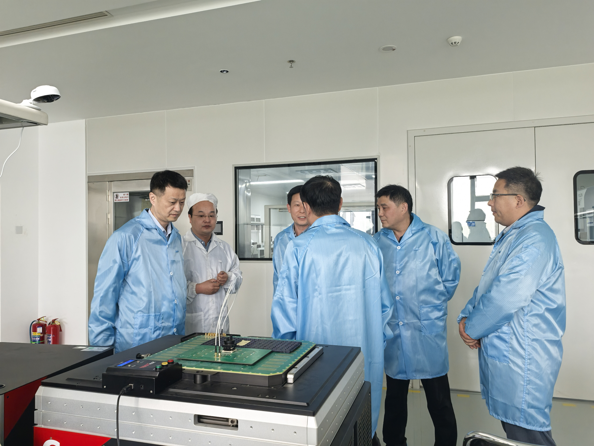 马亮一行深入电子所的生产车间、研发实验室及产品展示大厅进行现场参观交流,并与董事长、总经理卜小龙,副所长李兵、赵勇等进行座谈交流。