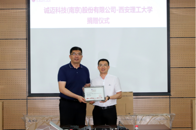 7月9日上午,诚迈科技(南京)股份有限公司信创实训室及电脑设备捐赠仪式在金花校区学科二号楼会议室举行。诚迈科技(南京)股份有限公司集团副总裁杨东林、陕西天诚软件有限公司总裁任玉荣、奇安信集团西安分公司总经理朱小刚、龙芯中科(西安)科技有限公司总经理吴江、西安华腾智航科技有限公司总经理孔亮及相关部门负责人出席仪式。仪式由beat365官网副校长张晓晖主持。