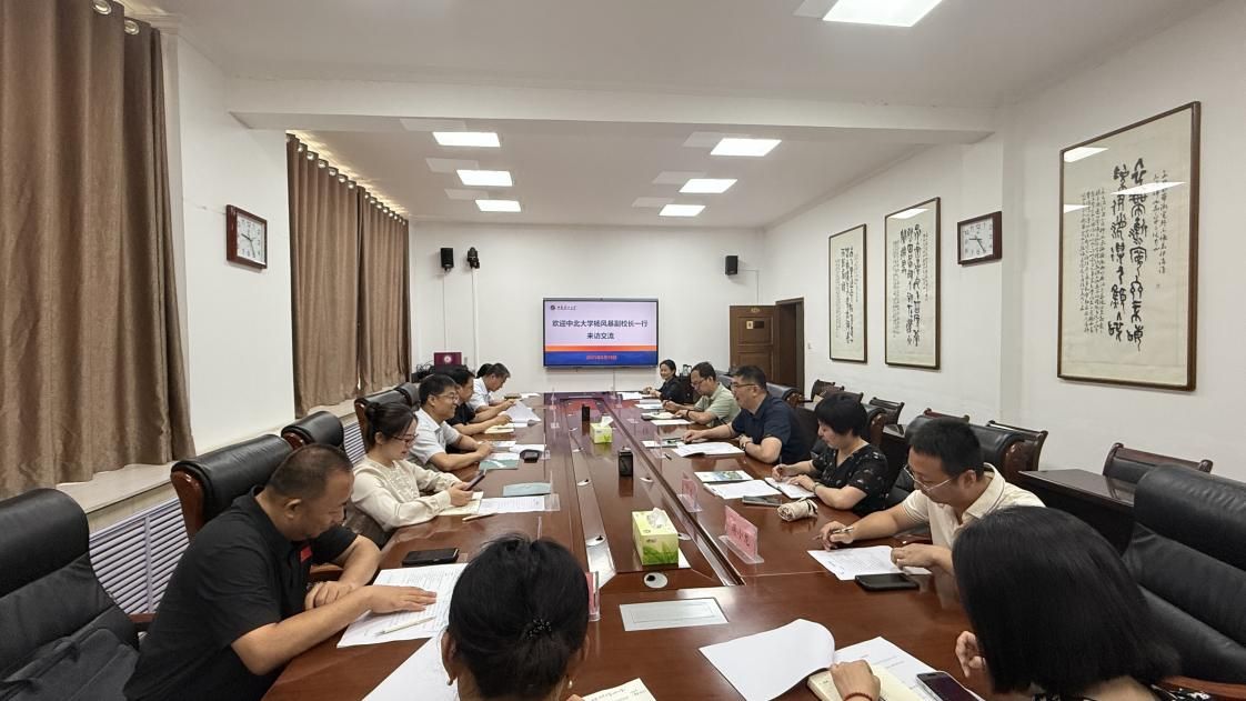 8 月 18 日,中北大学副校长杨风暴一行 8 人来校调研国际化和研究生教育工作,副校长张晓晖出席调研会并座谈。会议由国际合作与交流处处长杨媛主持。