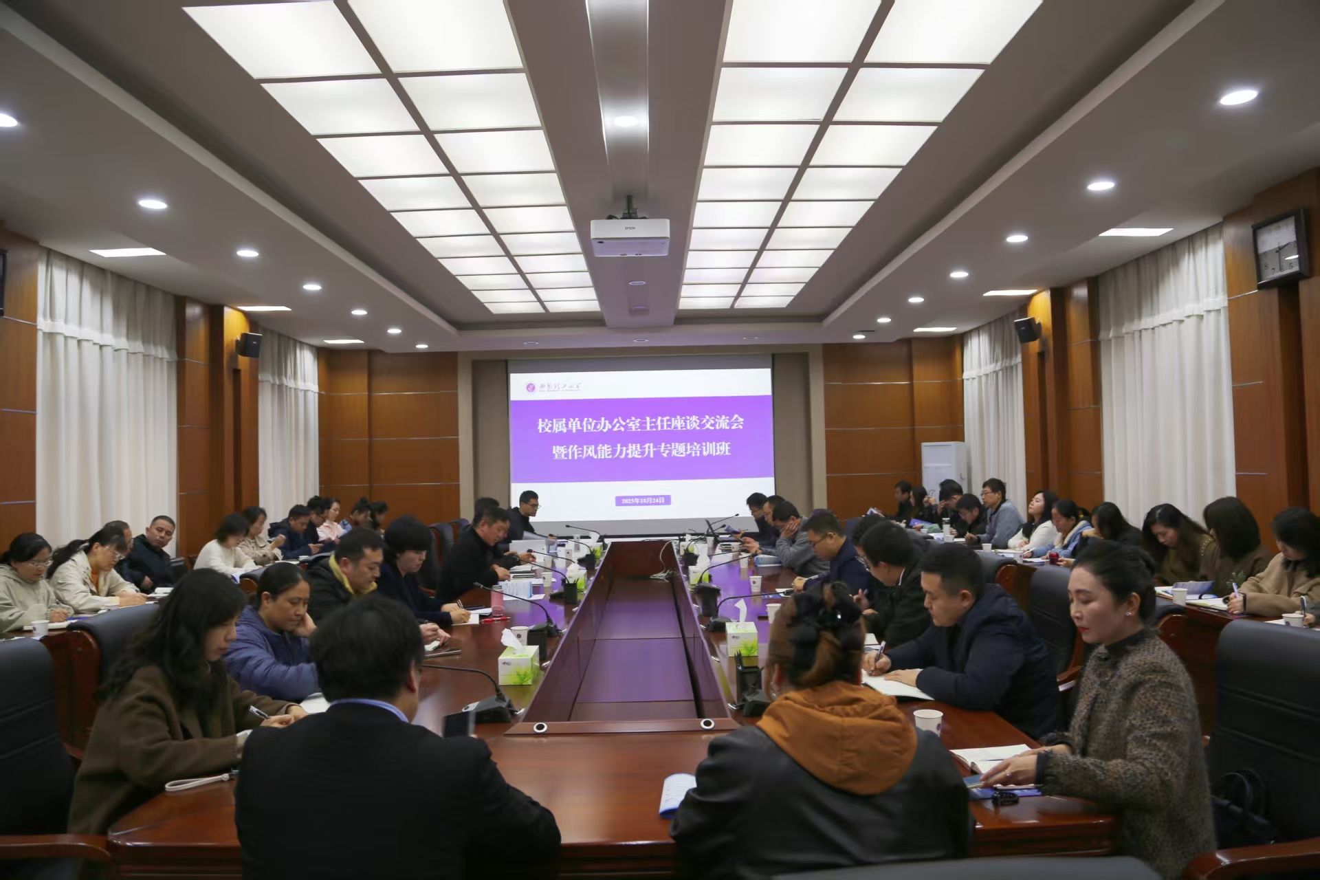 10月24日下午,beat365官网在101会议室举办了校属单位办公室主任作风能力提升专题培训暨座谈交流会。