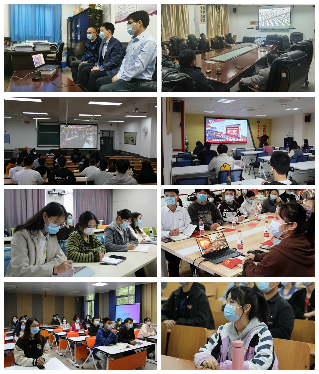 面向全校师生,学校党委采用“因地制宜、集中+分散、灵活多样”的方式,校内依托党委理论学习中心组、师生党团支部组织党政干部、教师党员、民主党派、思政课教师、辅导员、团学干部以及学生党员代表在智慧教室、会议室、党建活动室等场所集中收看大会盛况。校外师生就地就便通过网络、电视等多种方式收听收看大会直播。